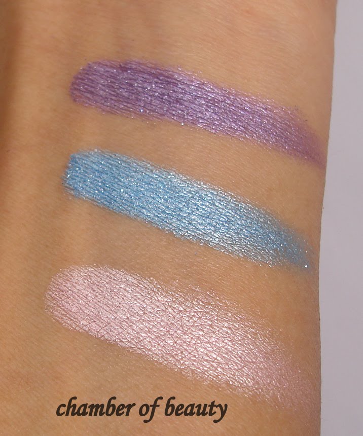The third shade is light blue. You may even call it turquoise. With light shimmers this shade is so summery and pigmented.