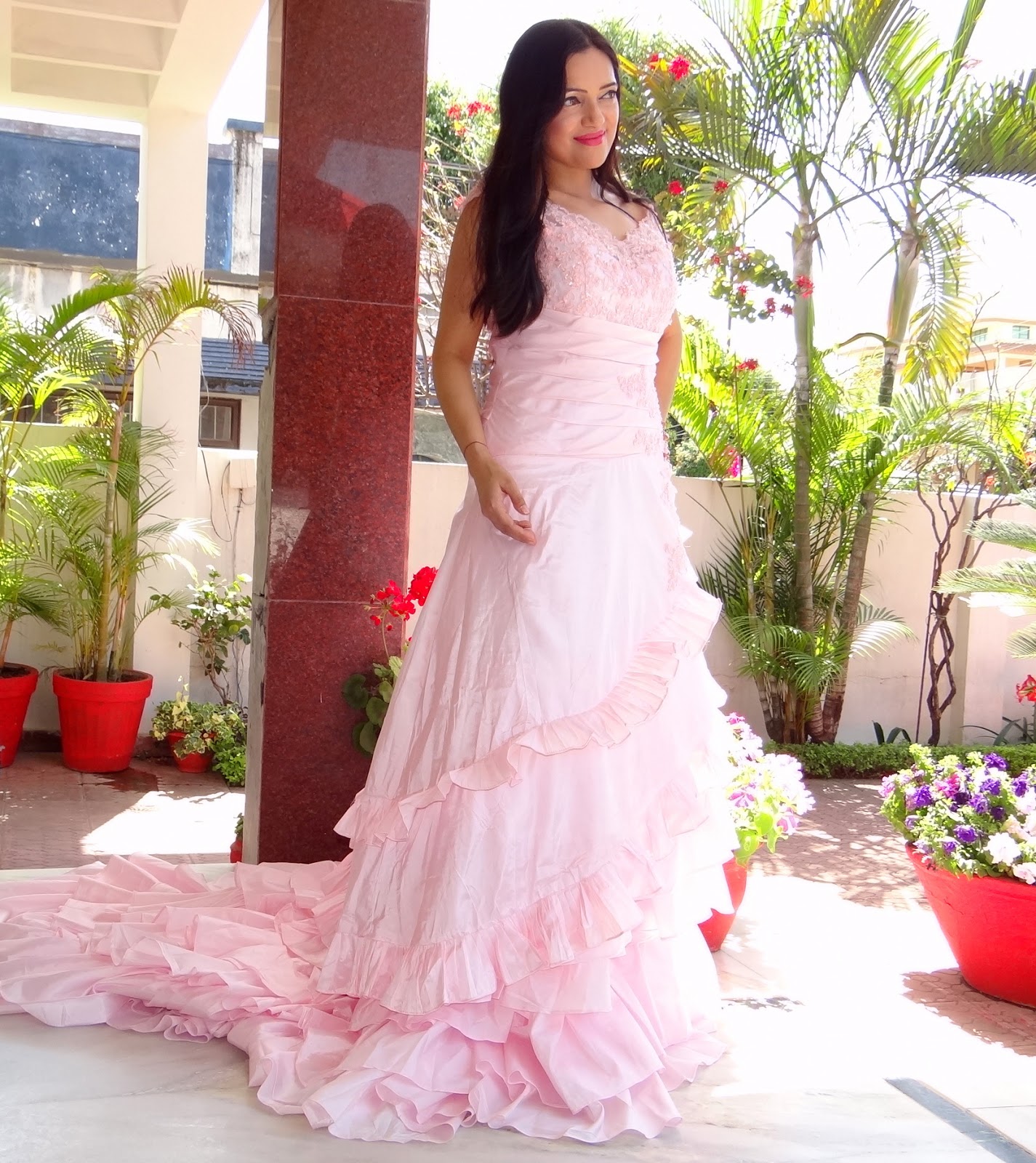 Today's look is something very special! A satin pink 'gown shaped liked a pastry' was something I had wanted since long!