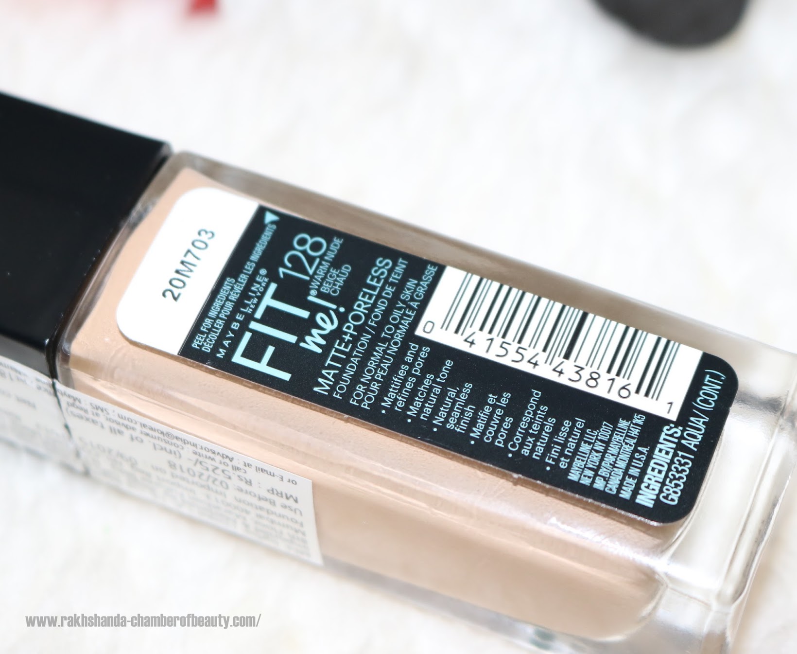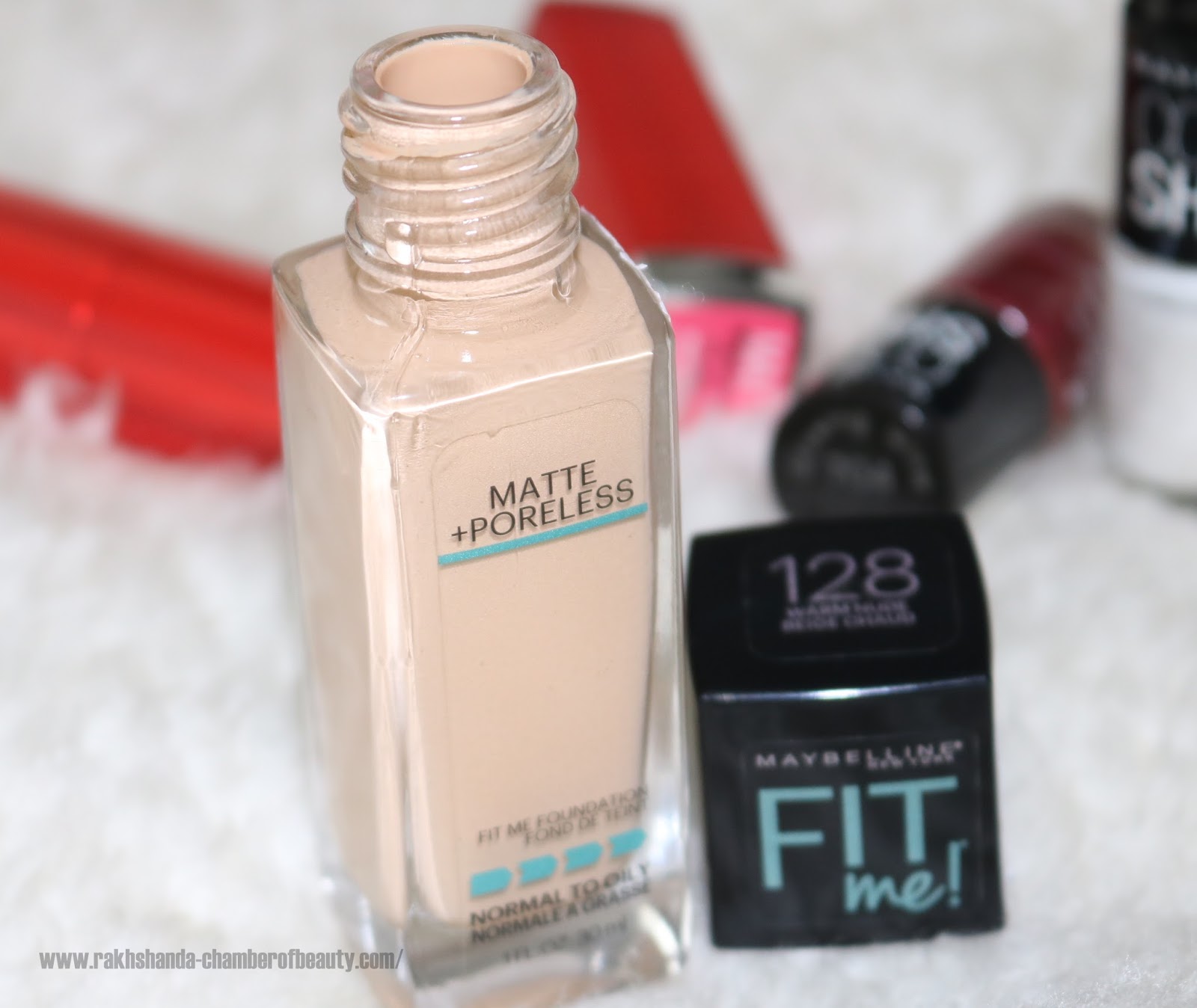 Review, swatches, shades, price, buy online Maybelline Fit Me Matte + Poreless Foundation 128 Warm Nude